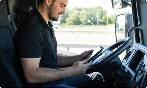 Safety, maintenance, routing, and compliance workflows flow through a single driver experience.