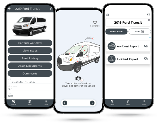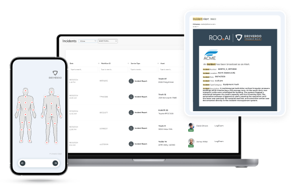 - Accident & Incident Reports - Guide operators through complete and thorough reports that are automatically stored and accessible in the Driveroo Accident & Incidents Dashboard with full details, images, and video.