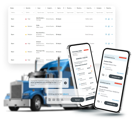 Keep documents and incidents next to inspections and repairs, then surface them in dashboards showing cost per mile, tire health, and more.