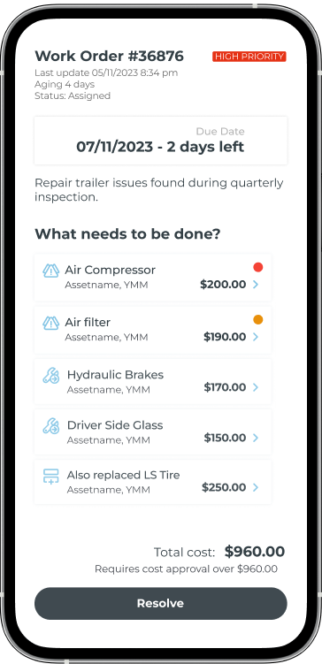 - Labor, parts & warranty visibility - Work orders include parts, labor, timers and automatic check for warranty coverage, simplifying tracking and saving money on repairs.